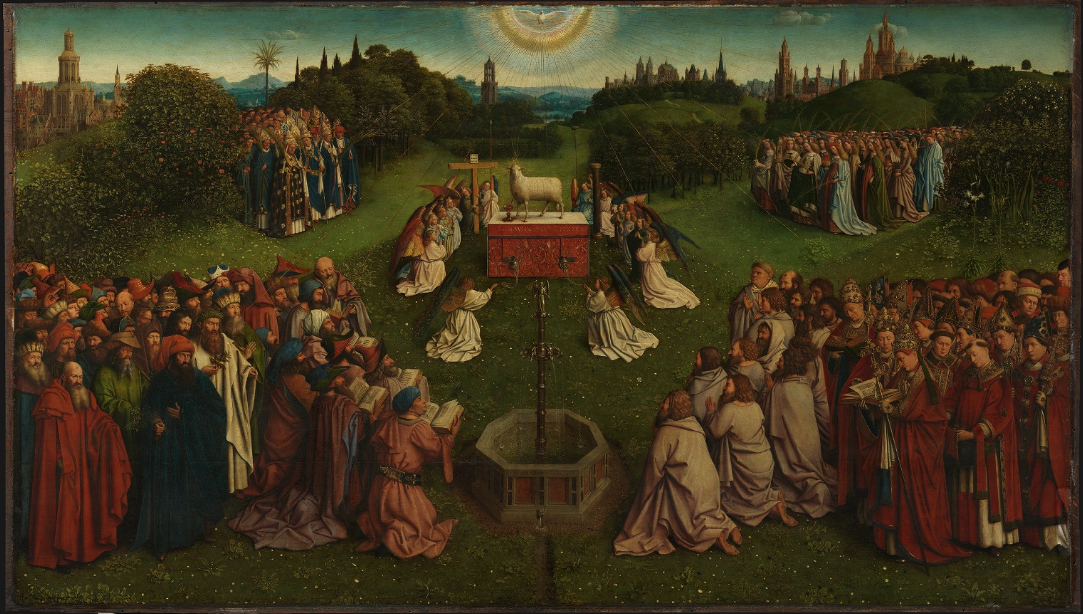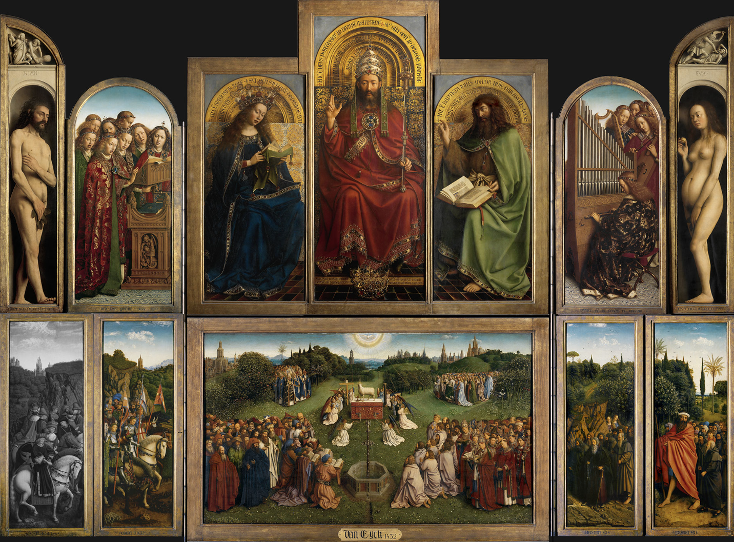 얀 반 에이크의 최고 걸작은 바로 겐트 제단화예요! 형 후베르트와 함께 만든 12개 패널의 거대한 제단화죠.