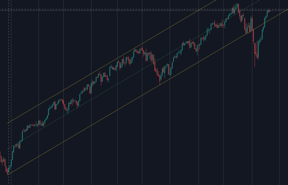 - 상승 채널: 상승 추세선 위에 평행한 선을 그려 상승 채널을 형성합니다. 이 채널은 가격이 상승하는 동안의 범위를 나타냅니다.